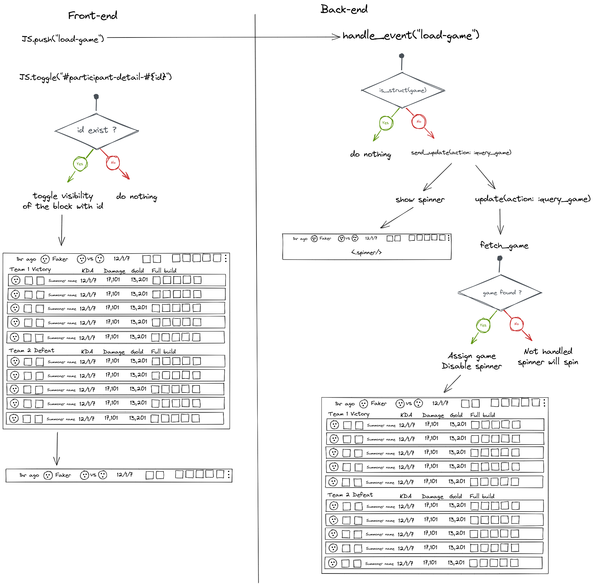 The idea here is to get a game with the ten participants and their summoner organized by team_id and team_position. We are using postgres array_position in a ecto fragment to sort per team_position.