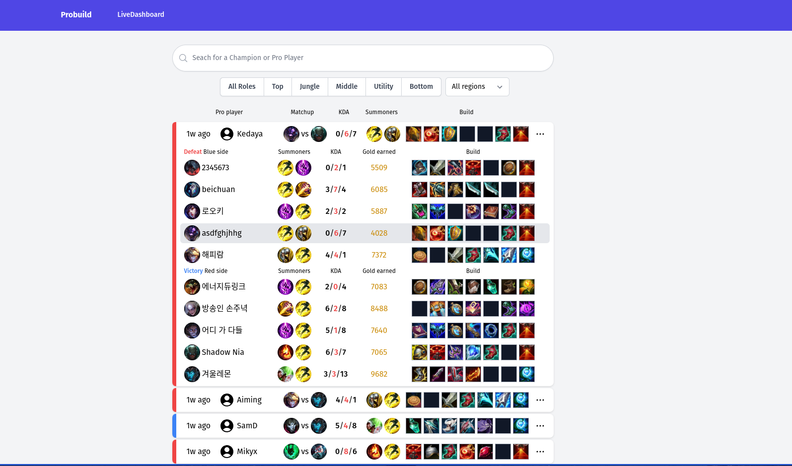 - A new liveview to display the most picked champions of pro player per patch / role/ region