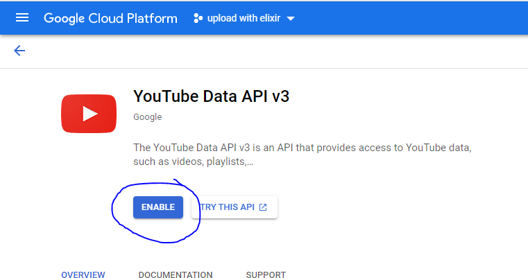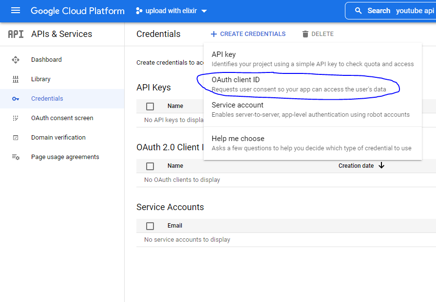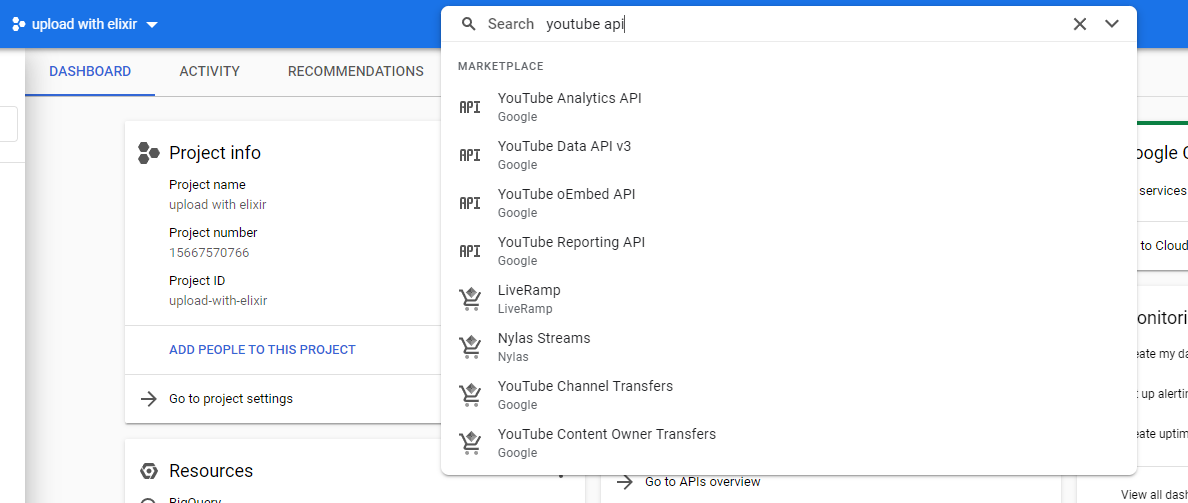Type youtube api in the search bar then click on YouTube Data api v3.