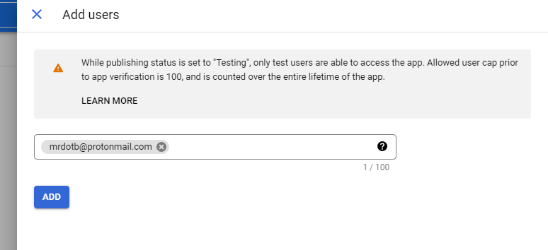 Add a test user this user is the google who own the youtube channel you want to upload.
