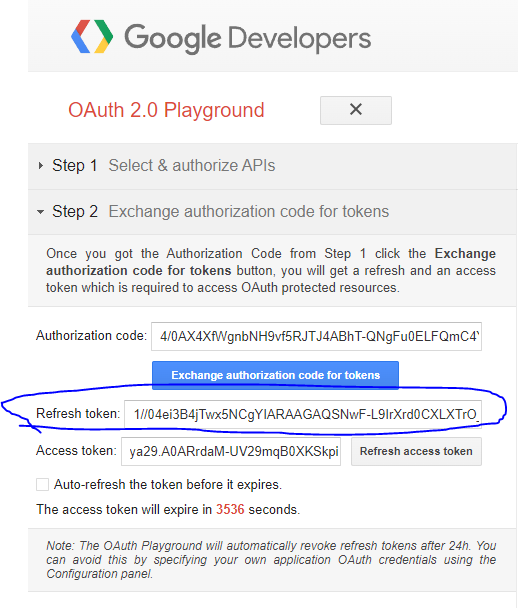 Now click exchange the authorization code for tokens. Copy the refresh token you will need it after.